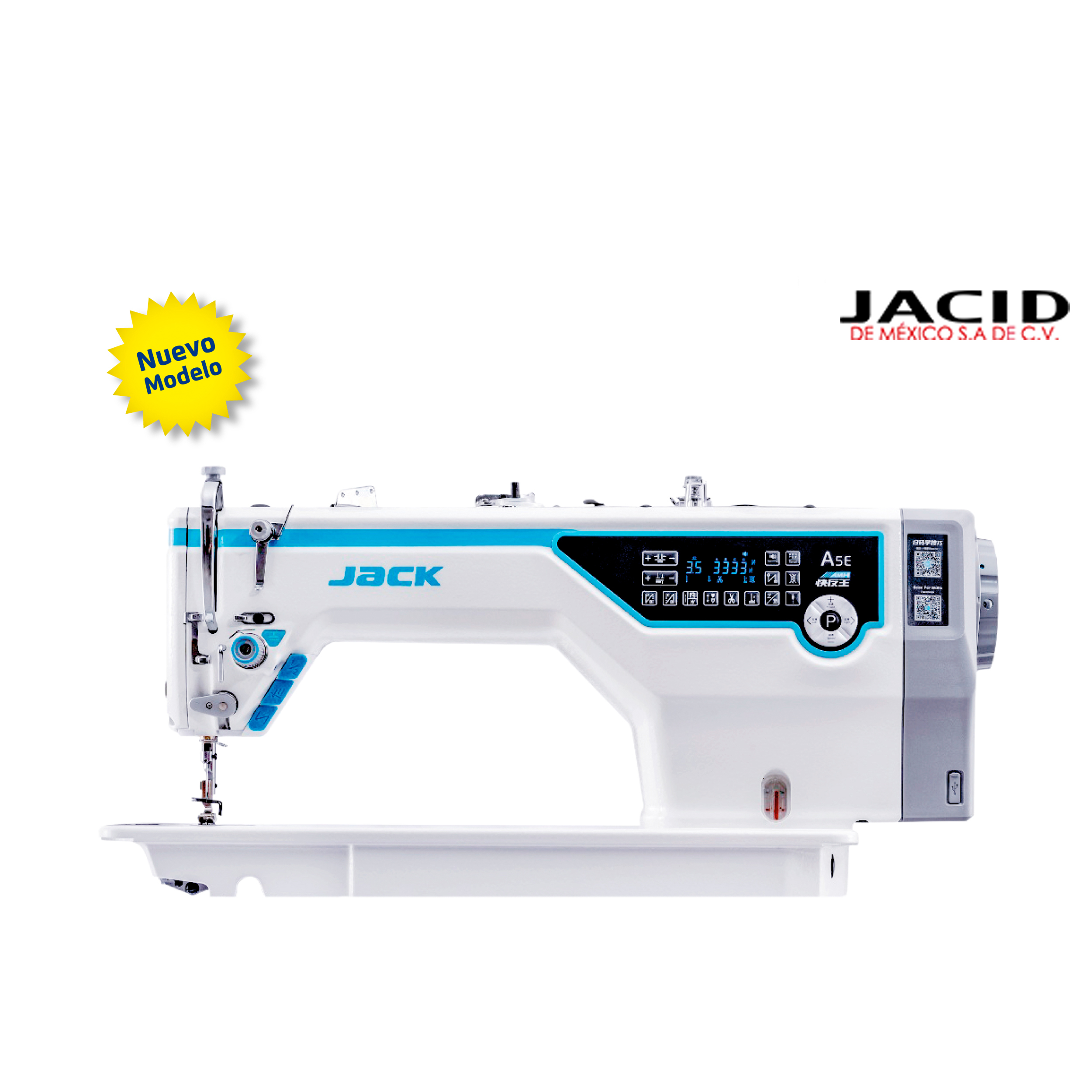 Máquina de coser Jack Recta electrónica con detección inteligente del grosor de telas y motor directo 110V