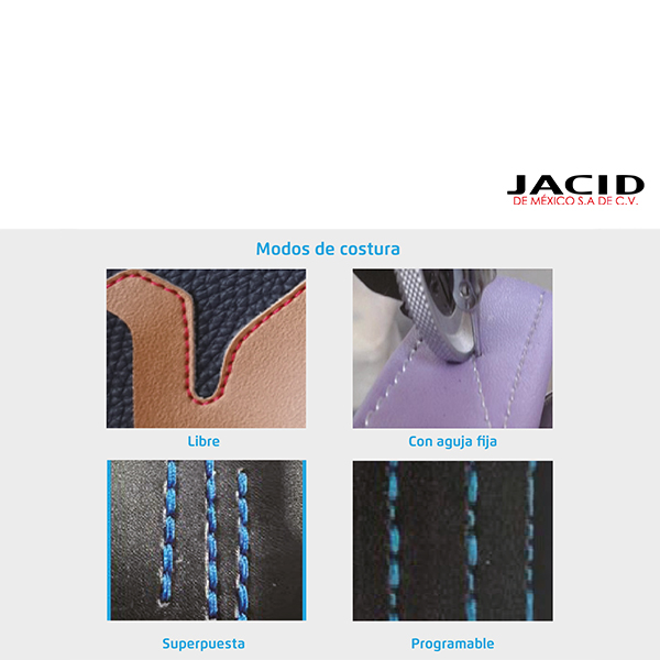 – 4 modos de costura estándar: libre, superpuesto, con aguja fija y programable